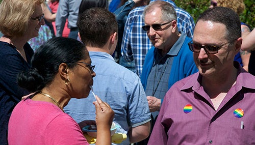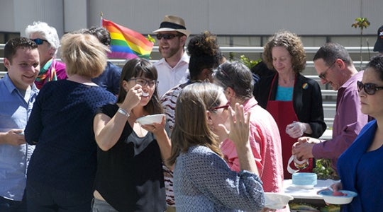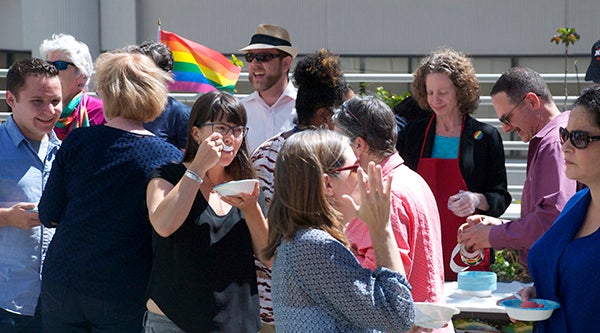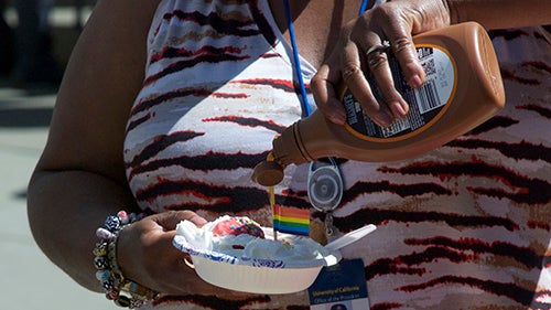 On Friday, June 3, UCOP celebrated Lesbian, Gay, Bisexual, Transgender and Queer (LGBTQ) Pride Month with 18 gallons of chocolate, vanilla and raspberry ice cream, a few quarts of chocolate and butterscotch syrup, cherries and whipped cream — and lots of rainbow sprinkles.