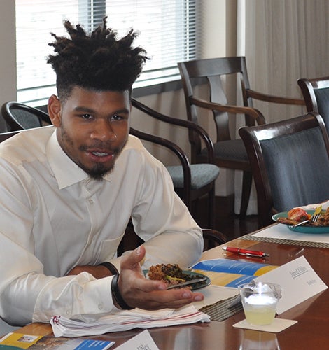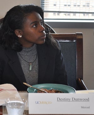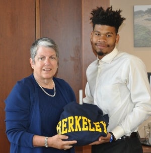 Other guests at the lunch emphasized the support that UC provides. “You are not alone — you are part of the UC family now,” said Jerlena Griffin-Desta, deputy to the vice president of student affairs. This sentiment was underlined by David Silver, education director in the Oakland mayor’s office, who urged them to not only “dig deep” when challenged at college but to be sure to seek out support. “There are people right now at all your schools who are ready to help you.” Scholarship recipient Jared Utley agreed, saying that he felt much more prepared and confident after attending the Summer Bridge program that UC Berkeley offers.