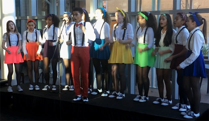 Capping the event was a special performance by a choir of eighth graders from the nearby Oakland School for the Arts (OSA), which blends immersive arts with academics to promote innovative learning. Their creatively arranged group harmonies and solos on songs such as “Cold War,” “Take Me Home,” and “Ain’t No Sunshine” drew thunderous applause while “Man in the Mirror” got the whole group clapping and hooting. As examples of the California students that UC is dedicated to serving, the singers from OSA provided a perfect finale to a celebration of the year’s accomplishments.
