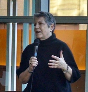 Once the group had gathered, President Napolitano offered her heartfelt thanks for the hard work that UCOP staff has done this year. “Whatever work you do, you do it for the greater whole, in service of the best public university in the world. Please know that you are changing the lives of thousands of students and their families every year.” Chief Risk Officer Cheryl Lloyd then took the microphone to ask for a moment of silence in honor of victims of the recent Oakland fire, which included students and alumni from three UC campuses. She also paid tribute to the many staff members who had just received service awards.