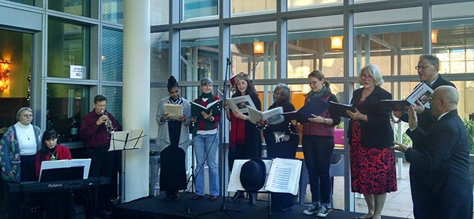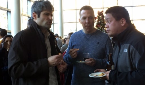 A festive crowd gathered at Faz in downtown Oakland on Friday, Dec. 16 for the annual UCOP End-of-Year Celebration. The UCOP Singers welcomed arriving partygoers with traditional holiday songs, and a tantalizing spread of appetizers and beverages was provided by generous donations from UCOP management staff.