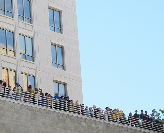 If anyone would like to watch the procession from the perspective of the 12th floor, please check out the videos I posted to YouTube: https://www.youtube.com/playlist?list=PL2CTBhorRyYUvW0erMwvZ70FFBNuohWjQ