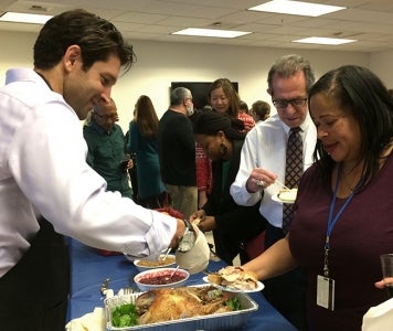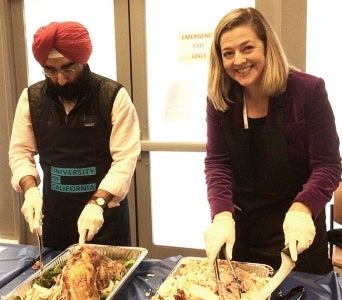 A special shout-out to our OP leadership for carving turkeys throughout the event: President Napolitano, Rachael Nava, Nathan Brostrom, Alex Bustamente, Charlie Robinson, Claire Holmes, Kim Budil, Jack Stobo, Jagdeep Baccher and Michael Brown. And thank you to their co-pilots who plated the food: Brett Henrikson, Cathy O’Sullivan, David Alcocer, David Phillips, John Torres, Kelly Drumm, Kimberly Peterson, Matt Hicks, Moira Perez, Oren Gabriel, Peggy Arrivas, Robin Holmes-Norton and Tricia Lyall.
