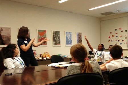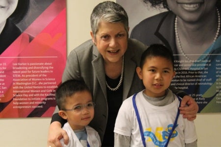 After a group breakfast in Franklin Lobby 1 in which President Janet Napolitano greeted staff and the children, Chief Operating Officer Rachael Nava kicked off the day’s activities with a warm welcome and encouraged the kids to ask as many questions as they wanted.