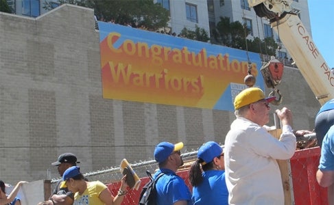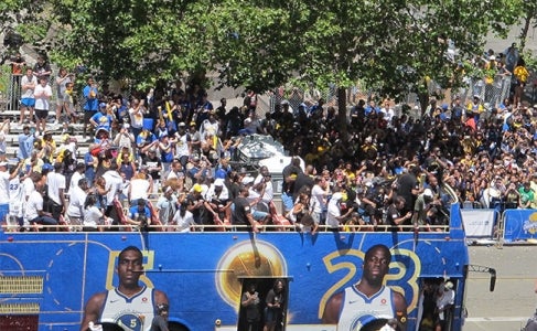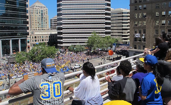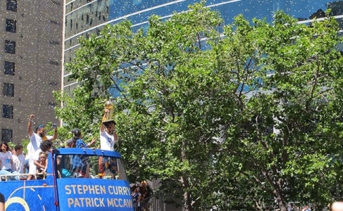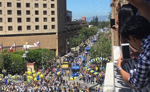 Amid a shower of blue and gold confetti and cheering fans, the Warriors celebrated their third NBA championship win in four years with a victory parade through downtown Oakland on Tuesday, June 12, and UCOP staff joined in on the festivities.