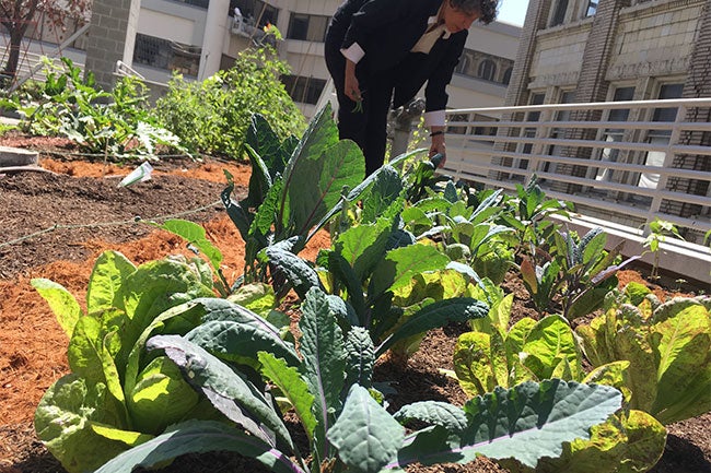 On the west side of the Franklin fifth-floor patio, a new vegetable and herb garden is taking root — and it all began with OP staff members with a love of gardening.