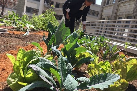 Once the plants were about 6 inches tall, she brought them to the Franklin building and placed them in the garden, where many have begun producing vegetables.