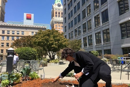 Leto and other volunteers began planting in May. Beth Kellman, senior events planner in BASC’s Event Services Team, gave many of the plants a head start by growing them first in small pots at her Hercules home, where the weather is warmer.