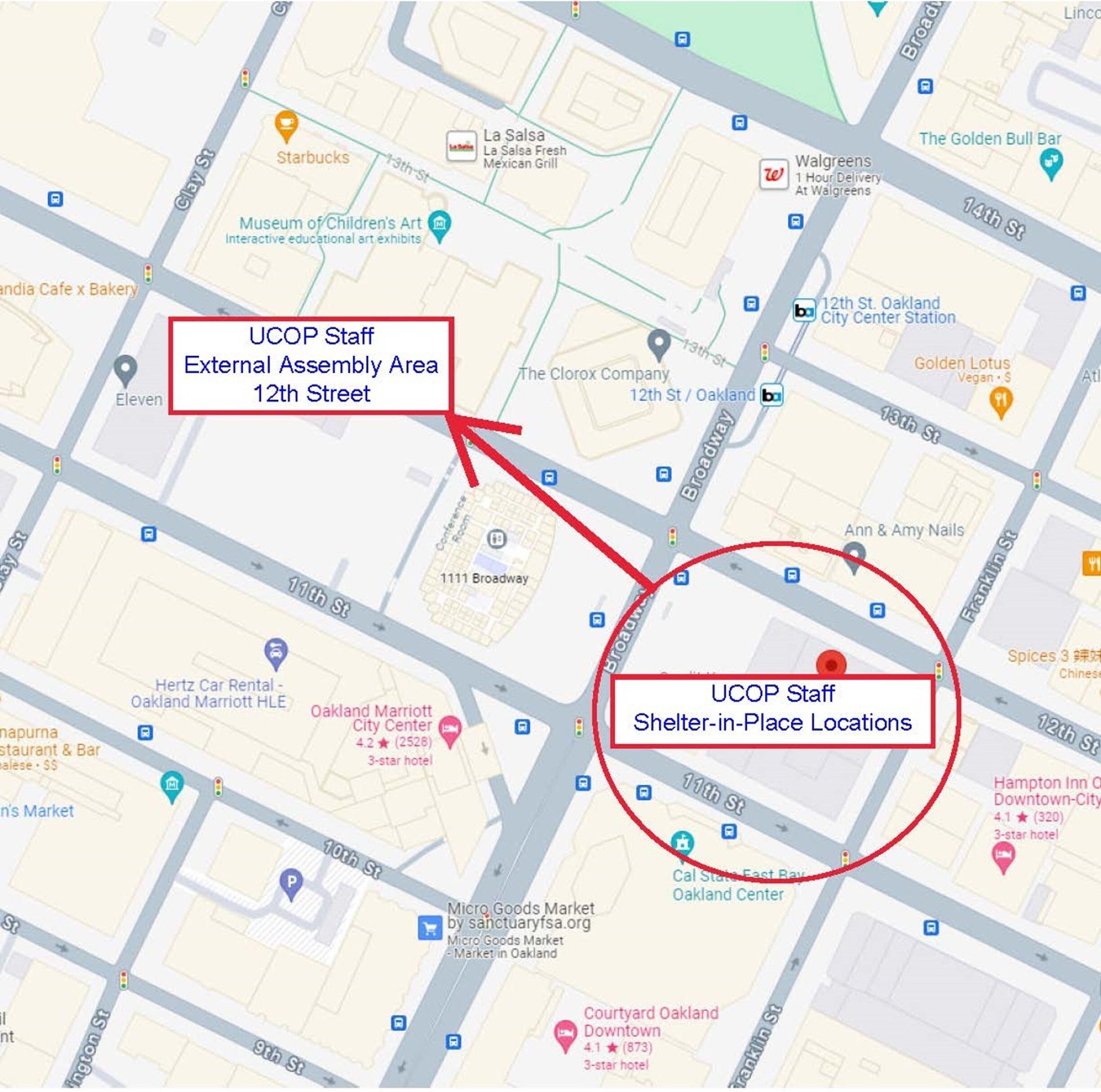 Map detailing the location of UCOP’s assembly point. Note: If you have difficulty understanding this map, contact the Work Management Center for assistance.