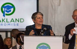 President Napolitano joined Mayor Libby Schaaf at the launch of a college incentive program for Oakland students.