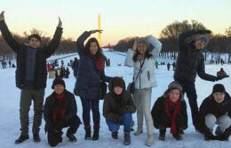 The Californians take to the snow with gusto.